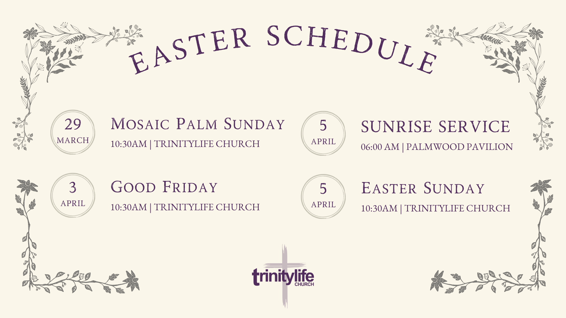 Easter Sunday - April 5 @ 10:30am - Location: Trinitylife Church